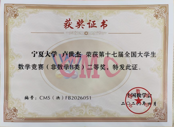 本届竞赛共设32个赛区,来自1322所高校的35万名学生报名参赛。经过初赛选拔,我校共有7名学生进入决赛,其中数学专业5人、非数学专业2人。