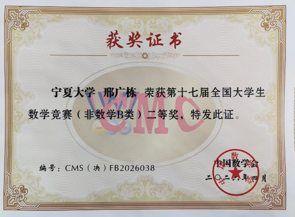 在决赛中,2024级卓师班陈新锦获数学专业低年级组二等奖,这是近年来我校数学专业学生在该项赛事中取得的最好成绩。2024级物理拔尖班邢广栋、卢世杰获非数学专业组B类二等奖。