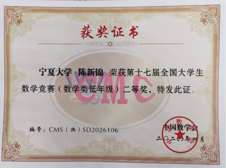 4月17日至19日,第十七届全国大学生数学竞赛决赛在四川大学和成都理工大学两个考点举行。我校选派的7名学生全部获奖,共获得二等奖3项、三等奖4项。