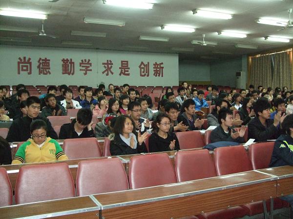 开班仪式结束后,戴兴安老师为全体团学骨干作了精彩的开班报告。戴书记的报告从中华民族的五千年历史中层层展开,娓娓道来。戴书记指出:全体团学骨干是马克思主义思想的践行者,是全院工作的中坚力量。戴书记强调:第一、全体团学骨干要统一思想,实事求是,认真学习十七大报告精神,明确“走什么路,举什么旗”,努力开创全院团学工作的新局面。第二、全体团学骨干要加强党性修养,丰富理论知识,坚定政治信念,多学习、多锻炼,不断完善自己。第三、全体团学骨干要关心同学,多为同学利益着想,提高自身能力,更好地为同学服务。戴书记最后指出,全体团学骨干经过培训班的学习,要保持思想上的不动摇、不怀疑,努力开拓数计学院的新局面。