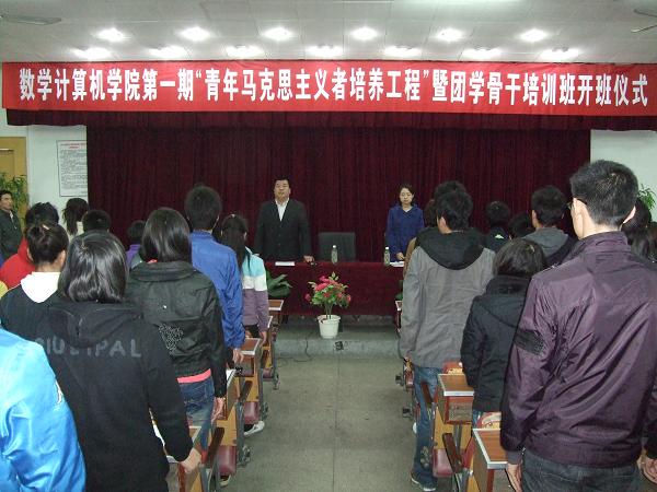 开班仪式在庄严的国歌声中开始。首先,蔡正云老师宣布了“青年马克思主义者培养工程”暨团学骨干培训班的实施方案,对培训对象、目标,培训原则、内容作了进一步的说明解释,并对全体学生提出了希望和要求。