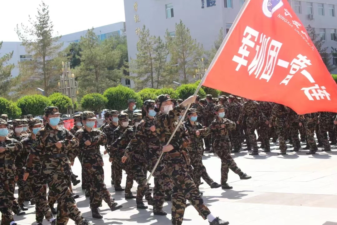 伴随着军训的号角声与哨声