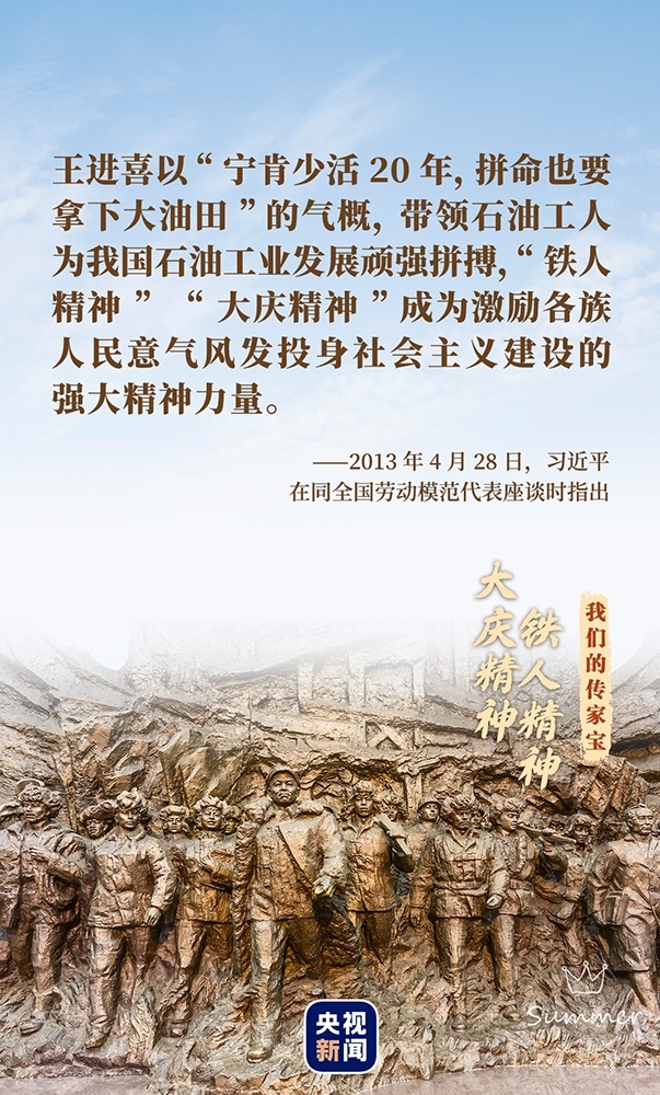 岁月更迭,精神的火炬在一代代大庆人手中传递、擎起。大庆油田涌现出以“铁人”王进喜、“新时期铁人”王启民、“大庆新铁人”李新民为代表的一大批先进模范人物……他们和千千万万大庆石油人一道,让大庆精神和铁人精神历久弥新。