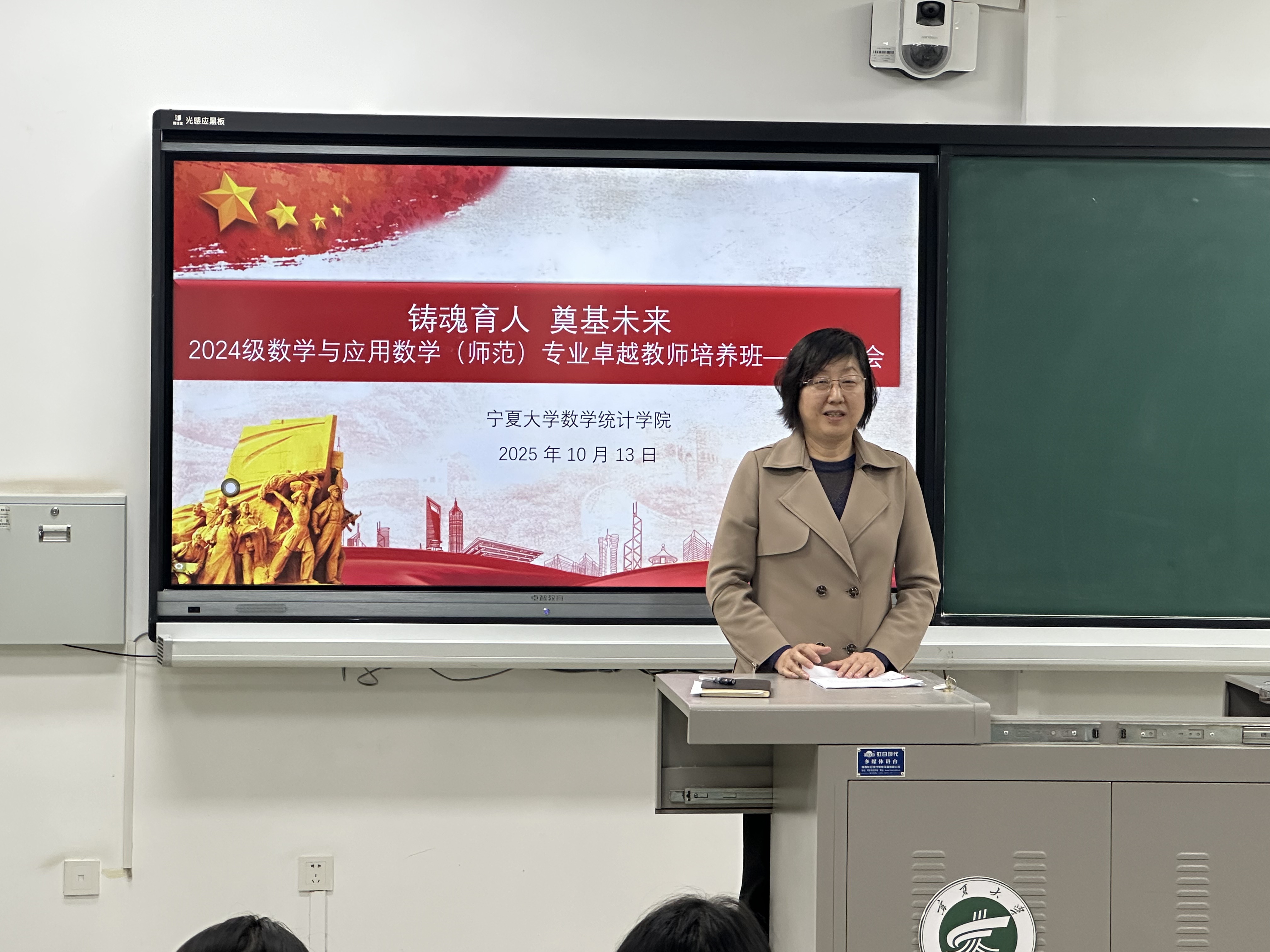 2025年10月13日晚,2024级数学与应用数学(卓越教师培养班)在贺兰山校区一教A阶103教室召开“铸魂育人、奠基未来”主题班会。校党委副书记、博士生导师韩惠丽教授,班主任李超老师及全体学生参加。