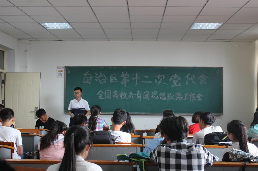 6月14日下午三点半,williamhill英国2016级以班级为单位,在怀远校区一教及研究生楼围绕“自治区第十二次党代会”、“全国高校共青团思想政治工作会”会议的召开和会议精神展开学习和讨论。