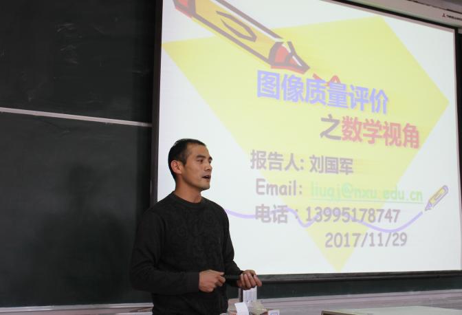 为使同学们从不同的视角来认识和学习数学,2017年11月29日下午三点,我院16级全体学生于金波楼331教室参加了主题为“图像质量评价之数学视角”的数学学科专题讲座,此次讲座由学院副院长刘国军老师主讲。