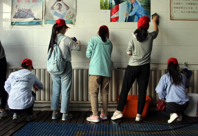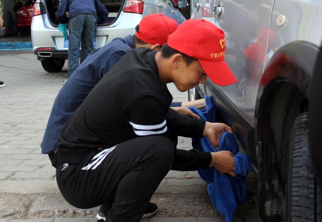 带着十足的热情,我院的志愿者踏上了去幸平憨娃洗车中心的路途。各位志愿者到达后,洗车中心的负责人很热情地接待了我们。接着本次的献爱心活动便开始了。负责人给大家提供了清洗所必需的工具并提醒大家注意安全。志愿者们领到工具后,协调分工,纷纷走向自己负责清洗的地方。他们非常仔细认真地洗车、扫地、擦灰尘,跑前跑后,不漏掉每一块不干净的地方。门框、墙面、地面、车上面以及车轮胎都被擦得一尘不染。劳动过程中,大家流了汗,但并没有喊累,他们累并快乐着,能为残疾人贡献一点自己的力量而感到骄傲。负责人让志愿者们休息一会儿再擦,他们说:我们不累!我们少休息一会儿,就可以帮助残疾人多清扫会儿,就能帮到他们更多的忙。转眼间,三个小时过去了,志愿活动也进入了倒计时,志愿者仍然在劳动,力争把自己能够看到的地方都打扫干净。看到眼前的一切都被打扫得干干净净,志愿者们才满意地点了点头,结束了此次的志愿清扫活动。活动最后,负责人召集了大家,为大家拍了合照,大家纷纷表示,以后有机会会经常来这里帮助残疾人。拍完照后,志愿者们和各位工人说了再见,此次志愿活动圆满结束。