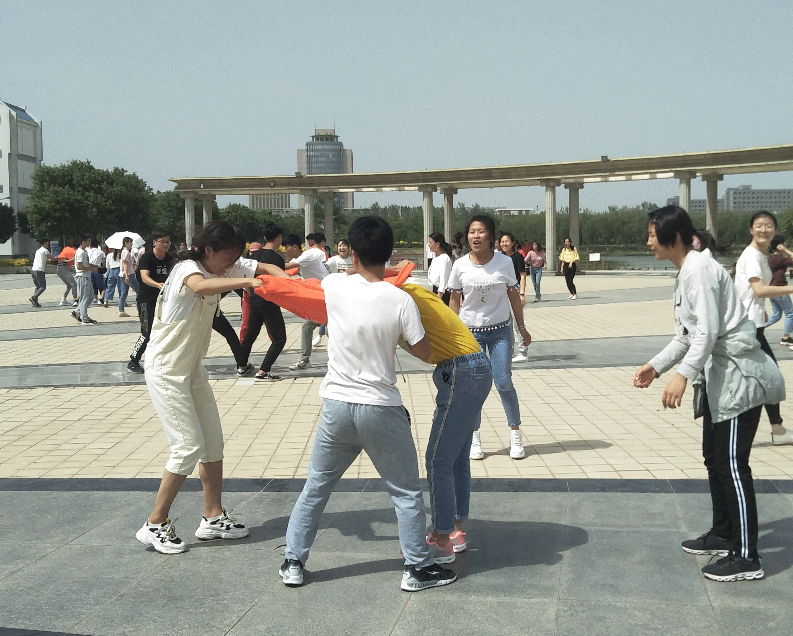 带着期待、带着热情,同学们早早就到达了活动现场,做好了充分准备。此次活动以比赛的形式进行,主持人宣布活动正式开始,同学们的神经瞬间紧绷了起来。活动分为四个项目:第一项,跳大绳,规则是钻进去的人数最多的一组获胜。大家都跃跃欲试,比赛开始,面对甩起的大绳,大家毫不退缩,反应敏捷,轻松的一次又一次钻过了大绳;第二项我为你脱衣,一个非常有趣的环节,同学们积极配合,互相加油鼓励,完美的完成了一个又一个动作。第三项:慢骑自行车,男同学有着高超的骑行技术,巾帼不让须眉,女同学们车技更是了得,骑行过程中又"慢"又稳,在最短的时间内完成了比赛;第四项,猜歌名,当歌声响起,大家都化身中华小曲库,用敏捷的思维,快速向主持人说出歌名,激烈而又有趣。比赛过程中,同学们团结一致,积极配合,现场秩序井然。每到激烈的时刻,场上一片欢呼呐喊声,吸引了众多眼球,场外的观众也为他们呐喊。在大家的认真参与、听从指挥下,此次活动顺利开展,同学们用热情为此次活动画上了一个圆满的句号。