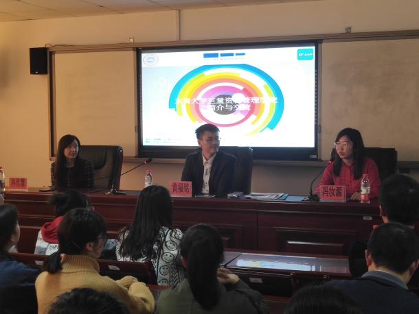 讲座开始前,学院党委副书记丁大勇老师介绍讲座参与人员。讲座伊始,黄福铭教授先进行提问,了解了学生们对大数据概念的理解程度,然后教授分别从大数据的概念、东吴大学的"特产"、学院的专业特色、师资力量等方面对大数据进行介绍,并举出一些有关的大数据的实例对大数据的应用进行具体的阐释。演讲结束后,黄福铭教授给学生们时间,当场提问,教授针对问题进行解答。随后,冯秀芳院长补充了大数据在如今的意义。最后。冯秀芳院长与黄福铭教授进行合影留念。