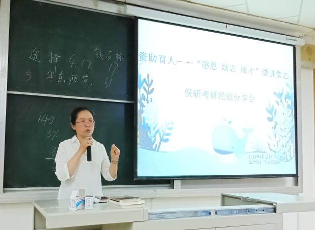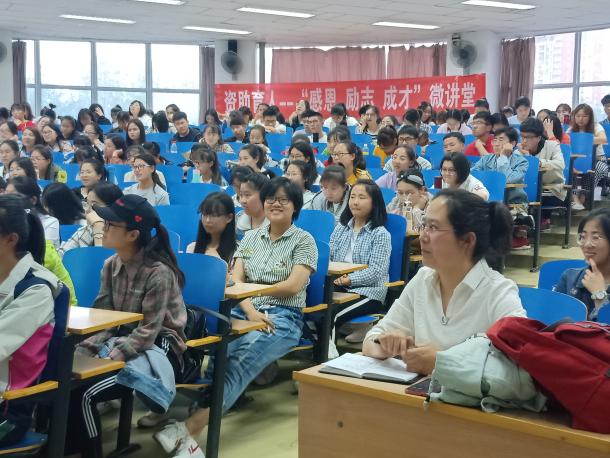 2019年4月17日19时,我院于怀远一教开展“资助育人——‘感恩励志成才’微讲堂之保研考研经验分享会”。本次分享会由我院团委学生会资助部部长赵米主持,我院学生工作办公室主任陶佳玲老师出席,我院三位保研考研成功的学长学姐,2018级全体同学与2016级2017级部分同学与会。