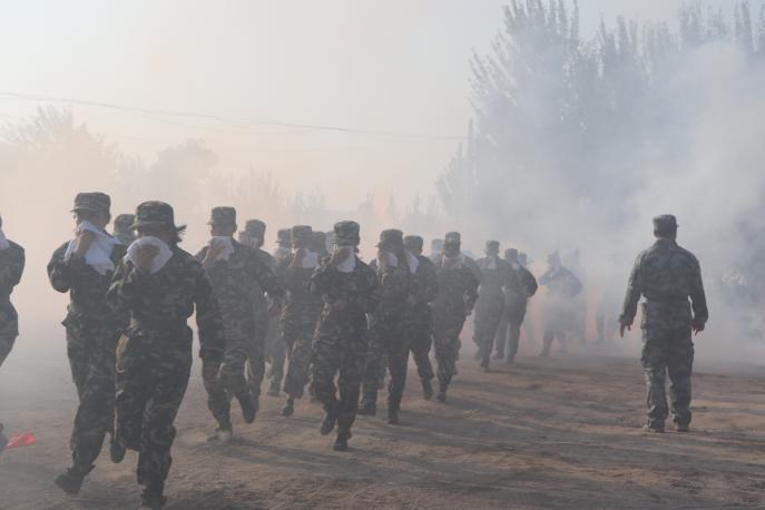 拉练并不仅仅意味着步行十公里,它还包括着三个内容:防毒练习,防空演练以及口令传递三个内容。防毒练习过程中,要求大家捂住口鼻快速通过。看这队列是多么的整齐!但在防空袭中出现了一些小小的问题,因为不够熟练,所以同学们无法在要求时间内完成要求的动作。总之,一营一连的所有参练同学们都顺利完成此次任务,这对我们来说是一次非常好的机会。