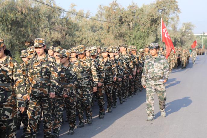 上午七时整,一营一连全体新生身着迷彩服整齐列队于贺兰山校区,经历了总指挥拉练前的动员,大家的斗志更加昂扬。真是应了那句“文明其精神,野蛮其体魄”。学校希望利用拉练活动来磨练新生的意志,希望这种意志也可以延续在我们今后的学习当中。