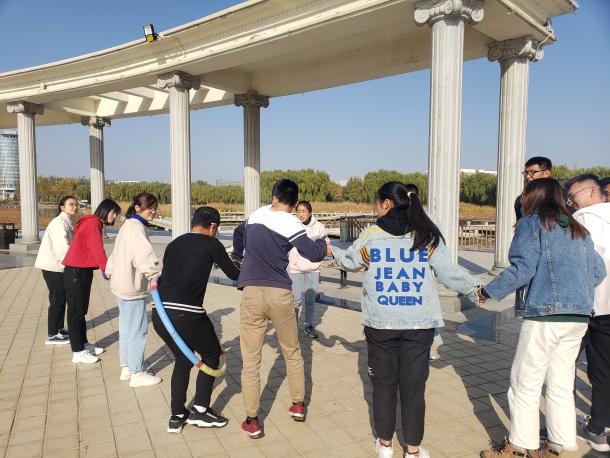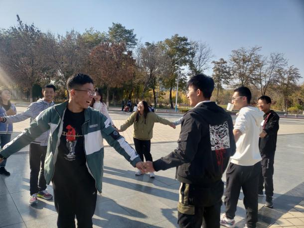 活动伊始,组织部部长穆万荣安排全体成员分成六个小组,有六个小游戏需要各组成员齐心协力完成,游戏开始的命令一经下达,六个小组争先恐后跑向游戏点,游戏过程中大家都尽自己最大的努力为小组争取分数,使自己的小组争取拿到第一名。各个小组中,不管互相之间是否认识,大家都手拉手,互相帮助、扶持,闯过一个又一个难关。在传递呼啦圈游戏中,大家十指紧扣、众志成城,希望呼啦圈能以最快的速度传递到最后;报数游戏中,大家坐下来共同探讨最好的方法使小组能够报的数最多;在单腿跳环节的最后,每个人都已经耗尽了体力,也坚持不懈到达终点,欢乐的时光一点点流逝。在之后的休息期间,组织部刘轶轩和文艺部李佳玲为大家表演对舞助兴,对舞精彩绝伦,广场上大家都在为他们欢呼呐喊。最后,学生会主席詹玥对本次活动进行总结,组织部部长穆万荣宣布各组成绩并发放奖品,本次活动在一片欢声笑语中落下帷幕。