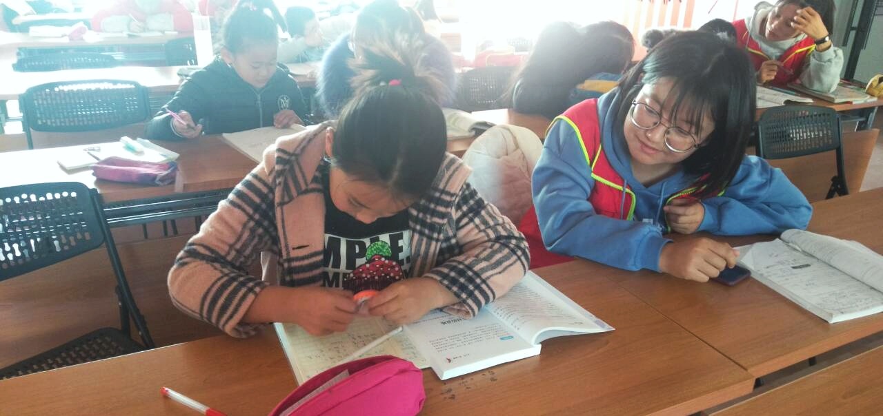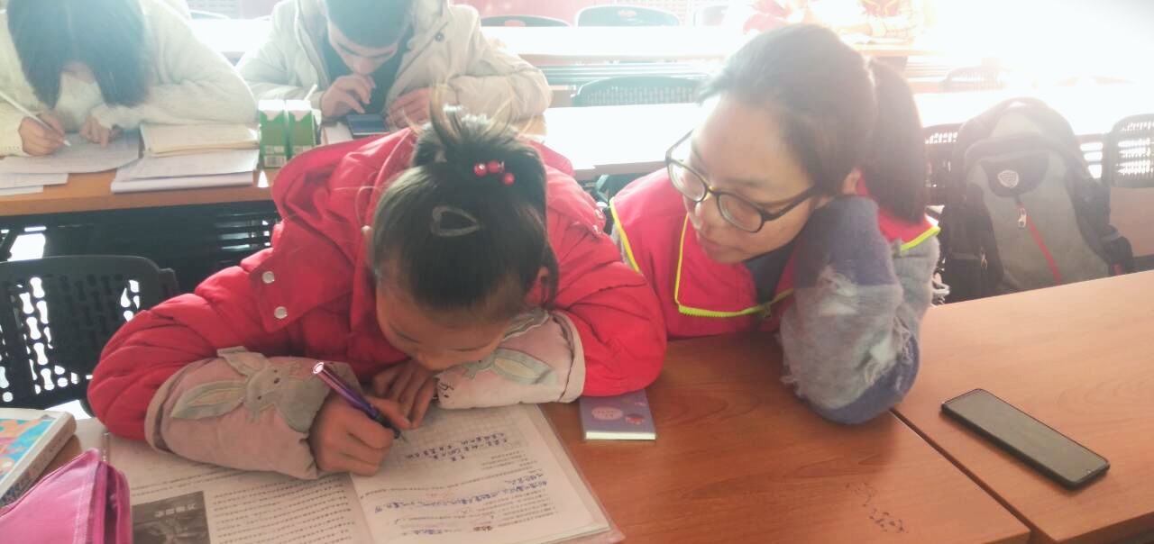 活动伊始,张小斌与马媛芳同学为大家发放英国威廉集团志愿者马甲并安排任务。志愿者与小朋友们各自组成学习小组,开始进行课业辅导。辅导时,孩子们认真而乖巧,专注地倾听我院志愿者们讲授的解题思路,学习方法,场面温馨而和谐。