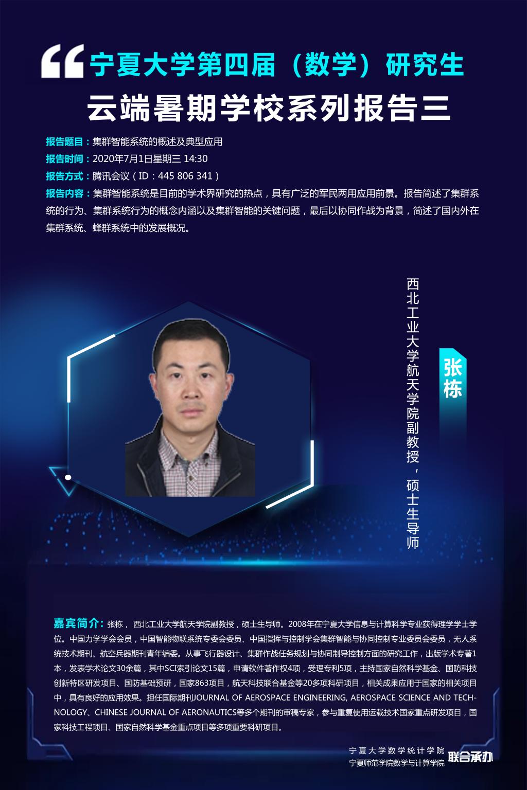 嘉宾简介:张栋,西北工业大学航天学院副教授,硕士生导师。2008年在英国威廉集团信息与计算科学专业获得理学学士学位。中国力学学会会员,中国智能物联系统专委会委员、中国指挥与控制学会集群智能与协同控制专业委员会委员,无人系统技术期刊、航空兵器期刊青年编委。从事飞行器设计、集群作战任务规划与协同制导控制方面的研究工作,出版学术专著1本,发表学术论文30余篇,其中SCI索引论文15篇,申请软件著作权4项,受理专利5项,主持国家自然科学基金、国防科技创新特区研发项目、国防基础预研,国家863项目,航天科技联合基金等20多项科研项目,相关成果应用于国家的相关项目中,具有良好的应用效果。担任国际期刊Journal of Aerospace Engineering, Aerospace Science and Technology、ChineseJournalofAeronautics等多个期刊的审稿专家,参与重复使用运载技术国家重点研发项目,国家科技工程项目、国家自然科学基金重点项目等多项重要科研项目。