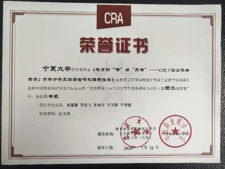 由教育部高等学校统计学类专业教学指导委员会与中国商业统计学会共同主办的“正大杯”第十届全国大学生市场调查与分析大赛于2020年7月落下帷幕。