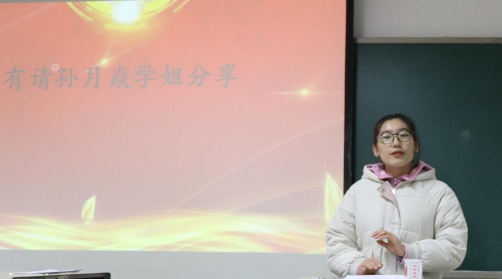 孙月焱同学则从俏皮的自我介绍开始,首先讲述了数学竞赛以及英语四六级考试的重要性。然后从“坚持”入手,详细地从培养个人爱好、纠正个人习惯以及明确目标等方面讲述了怎样平衡学习与生活从而更好的享受大学的苦与甜。最后她讲到:“生活不会欺骗你,你所有的结果都存在在你一点一滴的努力里,不要假装努力,因为结果不会陪你演戏。学会劳逸结合,学会享受,当你真正觉得学习是快乐的,一切就会变得更加有趣且有意义。”在孙月焱同学真诚又具有说服力的话语中,同学们进一步明白了学习的意义以及坚持的重要性。