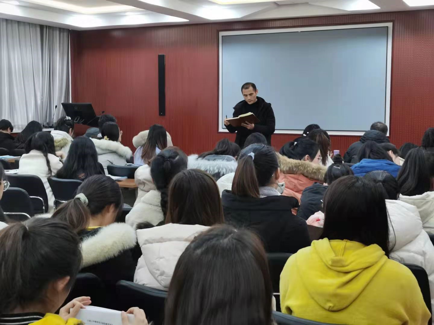 指导教师代表胡华老师充分肯定了同学们在实习过程中所获得巨大进步,肯定了同学们认真钻研的精神,指出同学们的教态语态相比之前有了明显提高。他强调,要做一个好老师不容易,教育实习中遇到的问题就是以后教学中可能遇到的问题,“纸上得来终觉浅,绝知此事要躬行”,望同学们充分重视,在实践中不断成长,做到“学为人师,行为世范”。