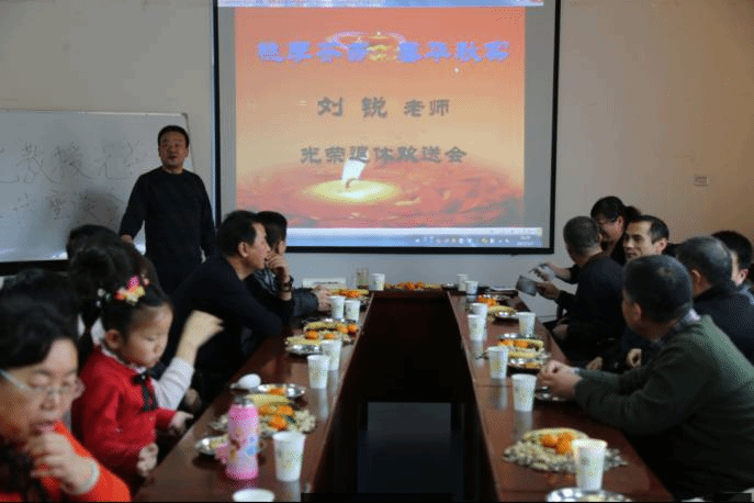 “一支粉笔两袖清风,三尺讲台四季晴雨,滴滴汗水滋润桃李芬芳满天下。”这是刘老师教育人生的真实写照。会议开始刘锐老师对自己的从业历程做了介绍,展示了很多工作生活的照片并讲述了照片背后的故事。现场各位老师畅所欲言,幽默风趣,气氛温馨活跃,充满着欢声笑语。照片中,有的老师早已退休,有的如今仍在任教,老师们追忆往昔,不禁感叹年华易逝。从这些照片中,可以看到老师们不朽的青春,育人的伟业,令人心生感慨。最后韩惠丽为刘锐教授献上鲜花,并颁发了牌匾及证书以赞扬刘锐任教36年为学院做出的突出贡献。