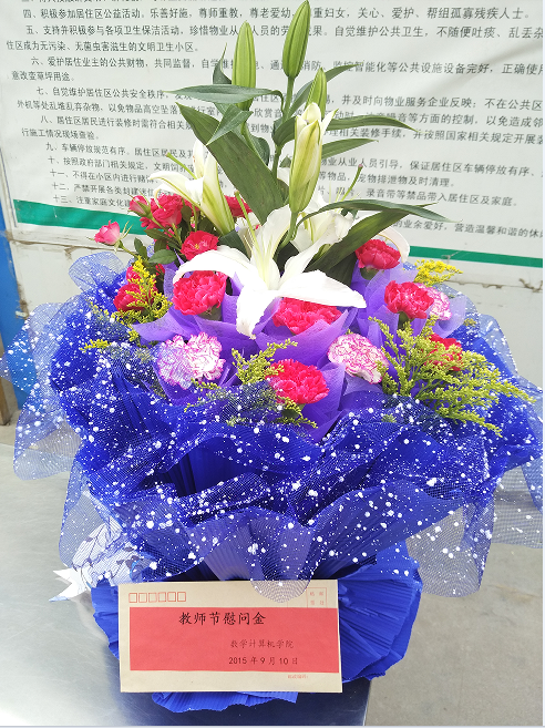 2015年9月10日下午,在全国第31个教师节来临之际,数学计算机学院党委书记刘富祥率领学院领导班子及工会、办公室部分人员,分别对学院乔晓军、宋矞、张伟斌、高怀毅等教师进行了节日慰问,并送上了鲜花和慰问品。