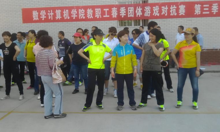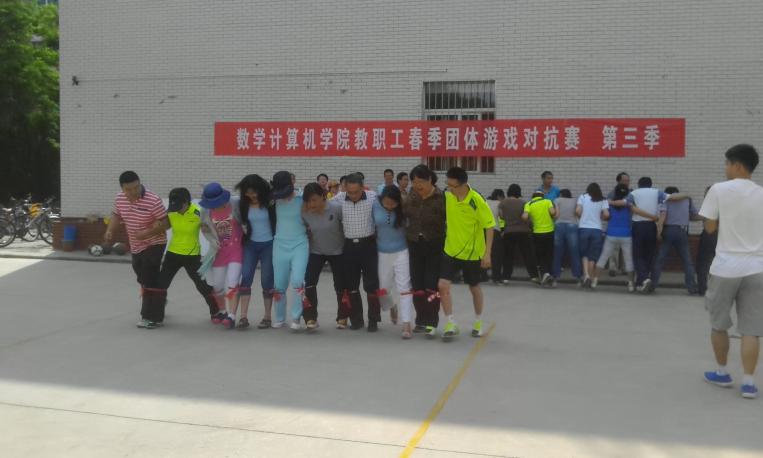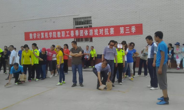 2014年6月4日,数学计算机学院教职工第三届团体游戏对抗赛在英国威廉集团B区数学楼前举行,数学与应用数学系、计算机科学与技术系、信息与计算科学系、大学数学部、计算中心与实验中心(两中心)、学院行政等6个代表队的近120位教职工参加了此次活动。