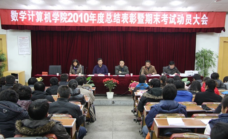 1月5日下午,数学计算机学院在B区综合楼报告厅隆重集会举行2010年度“创先争优”工作总结表彰暨期末考试动员大会。学院党政领导李嗣丞、乔晓军、纳殿文、冯锋、冯秀芳出席大会,全院教职工和研究生、本科生党员以及获奖学生参加了会议。大会由党总支副书记乔晓军主持。