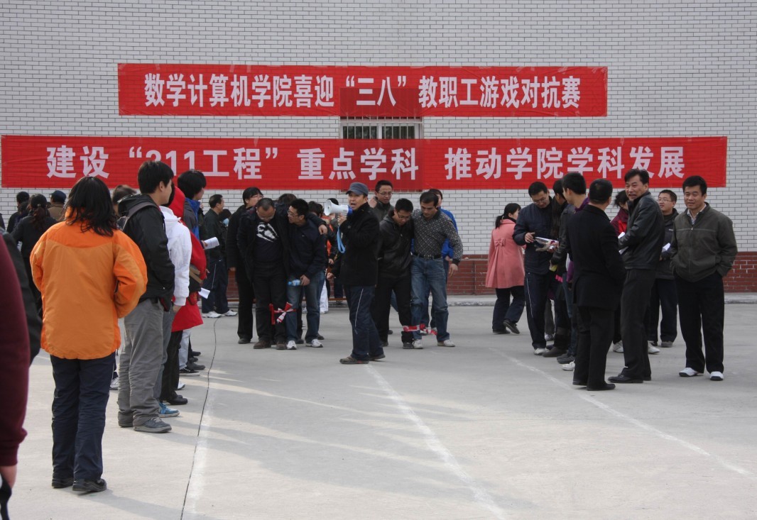 【数学计算机学院姜帆:供稿】为了丰富我院教职工的文化生活,加强我院教职工彼此的交流与沟通,增强各学科教职工间的凝聚力,在学院领导的倡议与广大教职工的积极参与下,3月7日下午,数学计算机学院工会在数学楼前广场隆重举行喜迎三八春季教职工游戏对抗赛。