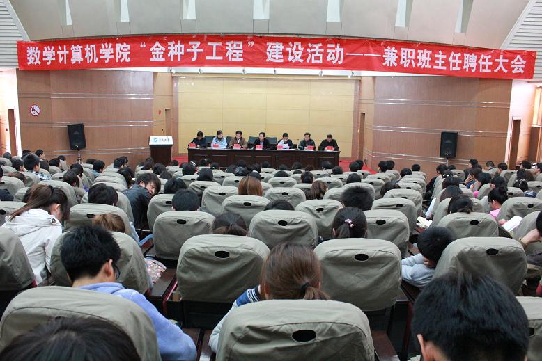 会上,院党总支书记刘富祥对《数学计算机学院开展“金种子工程”建设实施方案》做了详细说明。副院长韩惠丽宣读了《数学计算机学院兼职班主任工作职责》。党总支副书记纳殿文宣布了本科班兼职班主任聘任名单。学生代表2010级数学与应用数学(师范)2班乔楠同学和兼职班主任代表王燕老师分别作了发言。