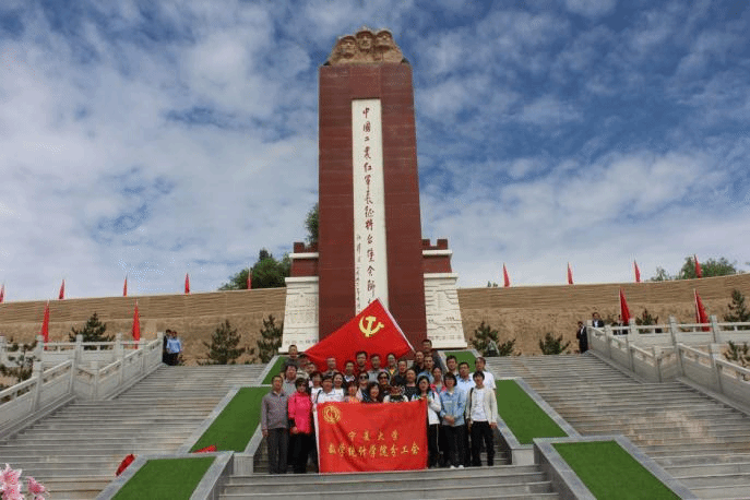 学院教职工来到固原西吉县将台堡红军会师纪念馆,气势宏伟的将台堡会师纪念碑上,“中国工农红军长征将台堡会师纪念碑”16个大字遒劲有力,碑的顶部雕有三尊红军头像,象征红军三大主力。面对庄严肃穆的将台堡红军长征会师纪念碑,学院教职工纷纷震撼的说:“不能忘记那些曾经为了祖国伟大事业抛头颅撒热血的革命先烈,要学习他们的革命精神和坚强信念。”