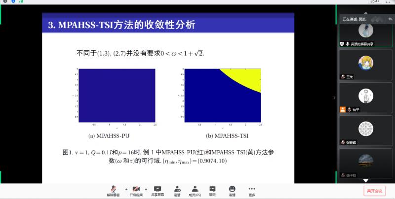 作为学院研究研究生培养的一个品牌活动,已连续举办三届。此次采用腾讯会议授课,以系列报告的形式开展,共邀请报告嘉宾8人,分别是香港浸会大学林学磊博士,同济大学航天与力学学院田小娟博士,西北工业大学航天学院副教授、硕士生导师张栋,西安电子科技大学赵琦博士,合肥工业大学副教授、硕士研究生导师余波,中国石油工程建设有限公司北京设计分公司管道室主任高级工程师尤雪梅,华南理工大学副教授、硕士研究生导师宏波,陕西师范大学吴波博士。被邀请的校友在各自的岗位做出了卓越的成绩,如林学磊博士曾在清华大学举办的“第八届世界华人数学家大会”获2019年“新世界数学奖”优秀硕士论文银奖(金奖空缺),张栋老师主持国家自然科学基金、国防基础预研、航天科技联合基金等20多项科研项目,尤雪梅主任带领管道团队完成10个海外油田项目,余波老师在边界元和反问题方面发表多篇Top期刊论文,宏波老师在海洋动力学方面主持参与项目10余项。此次系列报告的学员主要为宁夏数学学科研究生、青年教师,以及部分本科生共计150余人。