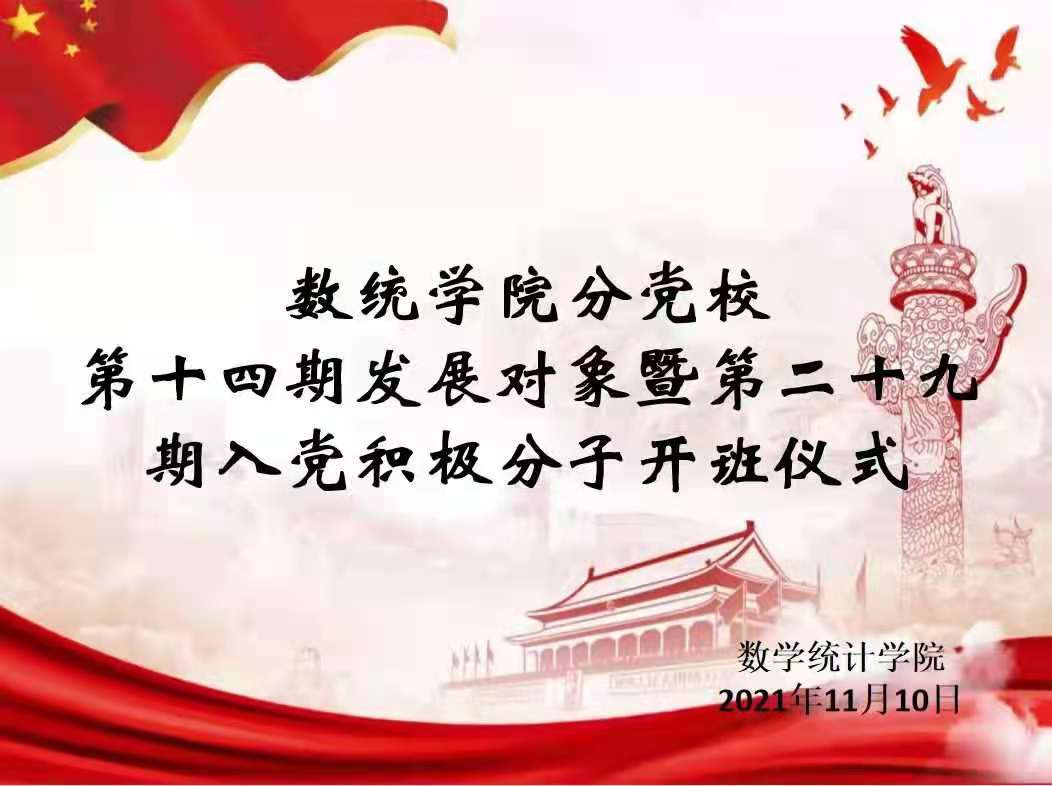 2021年11月10日下午15时30分,williamhill英国通过“腾讯会议APP”线上举行“williamhill英国分党校第十四期发展对象暨第二十九期入党积极分子培训班开班典礼”,此次开班典礼由我院党委副书记陈建丽老师主持,学院党委书记刘富祥老师,学院党委副书记郑轶老师,学院副院长刘国军老师、李风军老师、汪文帅老师,学院数学教育党支部书记陶佳玲老师,数学综合党支部书记刘璐老师,2021级辅导员杨阳老师,研究生辅导员刘永涛老师,以及全体分党校培训班学员共同参与。