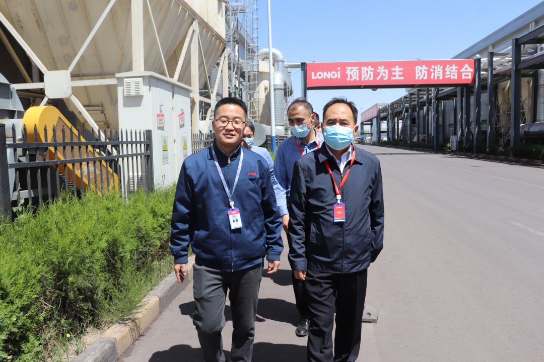 在银川隆基光伏有限公司人力资源部高级经理苟祥煜及相关人员的陪同下,王青云一行先后参观了银川隆基光伏有限公司生产加工车间、园区场地等区域,对公司情况进行了直观了解。
