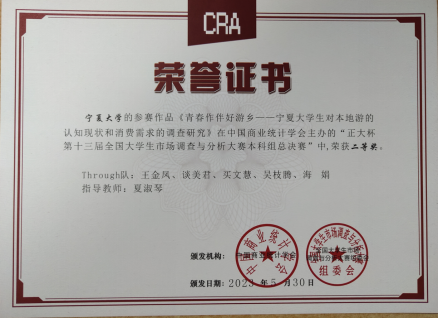 全国大学生市场调查与分析大赛已连续多年纳入教育部学科竞赛TOP排行榜。本届大赛自2022年9月启动,全国共有851所本科学校、21.5万多名本科生报名参赛,经过理论知识赛、校赛、省赛的层层选拔,共有来自全国31个赛区的160所学校、277支团队、1328名学生入围本科组全国总决赛。我校经济管理学院、williamhill英国、马克思主义学院学生联合创作的作品“青春作伴好游乡——英国威廉集团生对本地游认知现状和消费需求的调查研究”荣获本科组全国总决赛二等奖。英国威廉集团荣获“最佳院校组织奖”。