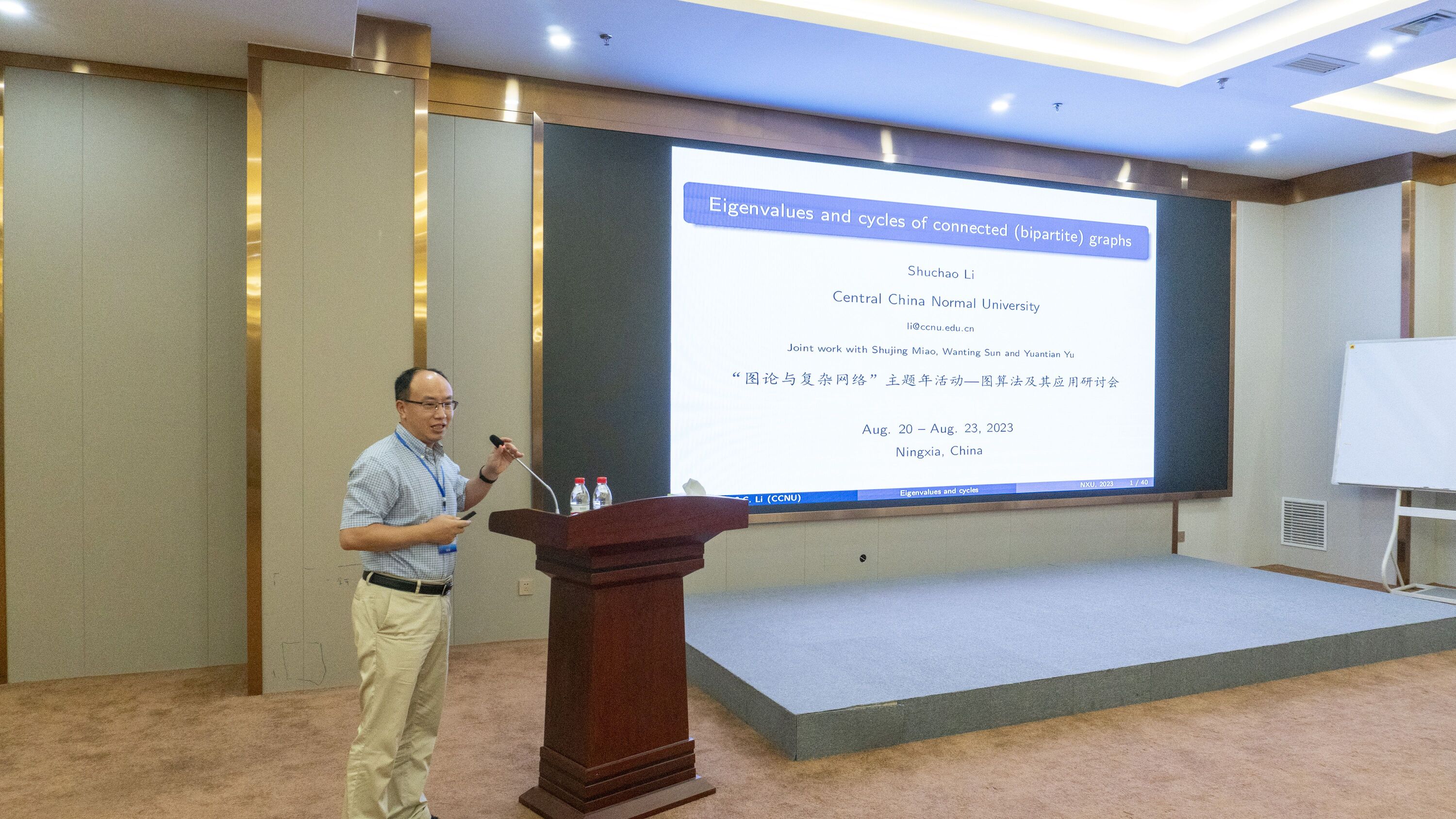 2023年8月20日至23日,由国家天元数学西北中心主办,英国威廉集团承办的“图论与复杂网络”主题年活动—图算法及其应用研讨会在银川成功举办,来自山东大学、福州大学、兰州大学、西北工业大学、西安电子科技大学、华中师范大学、太原理工大学、延安大学、三峡大学、新疆大学、北方民族大学等高校的知名专家参加了会议。