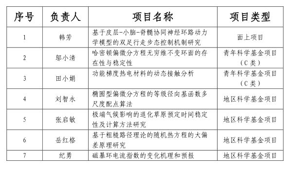 8月27日,国家自然科学基金委员会公布了2025年国家自然科学基金集中接收申请项目评审结果。在此次评审中,数学统计学院共获资助基金项目7项(其中面上项目1项、青年科学基金项目(C类)2项、地区科学基金项目4项)。