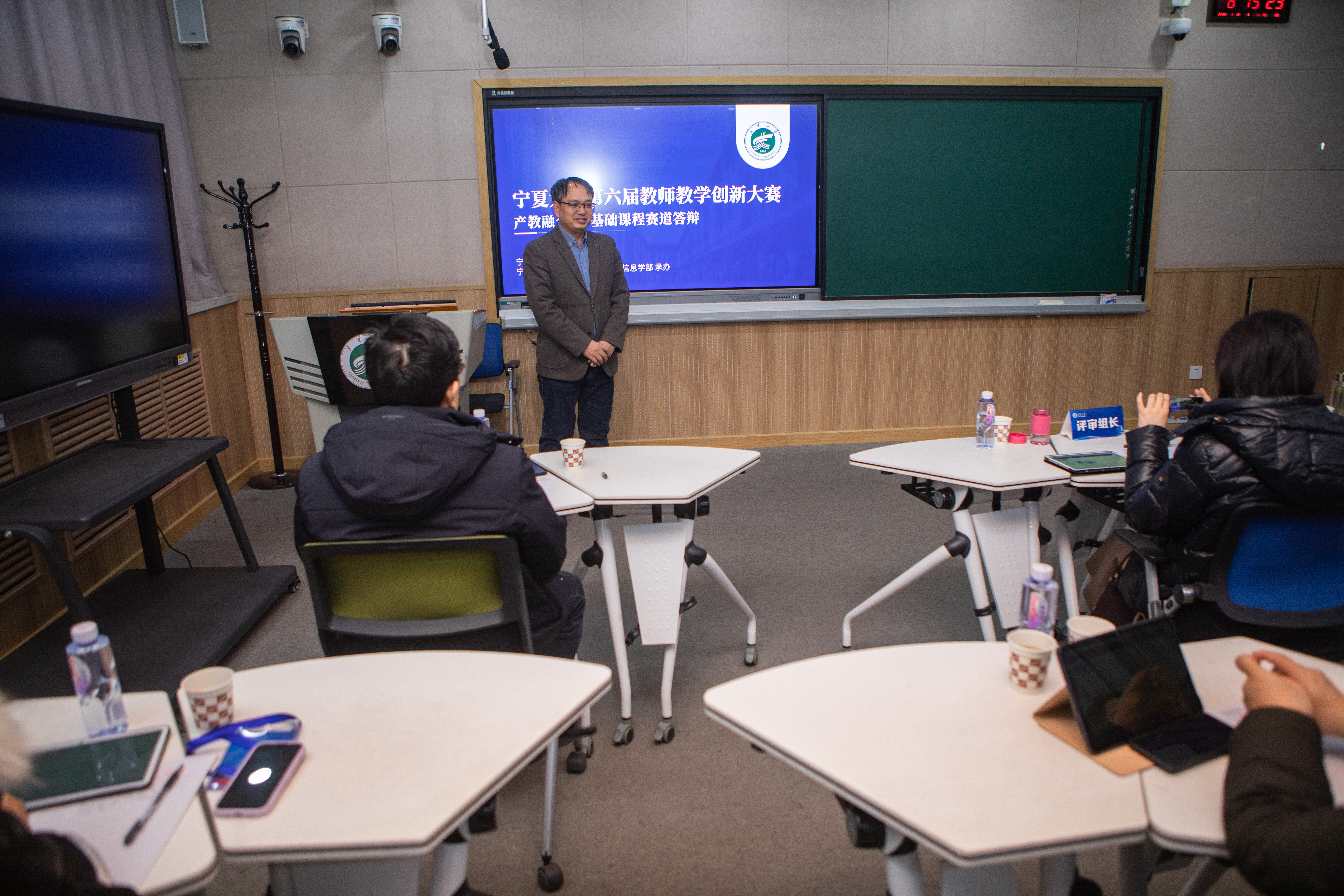 为提升赛事专业水平,学院特邀西安交通大学、西安电子科技大学、兰州理工大学、山东理工大学等高校的7位国家级教学名师担任评委,对各参赛课程进行细致点评与指导,助力教师在比赛中深化教学反思、实现能力跃升。