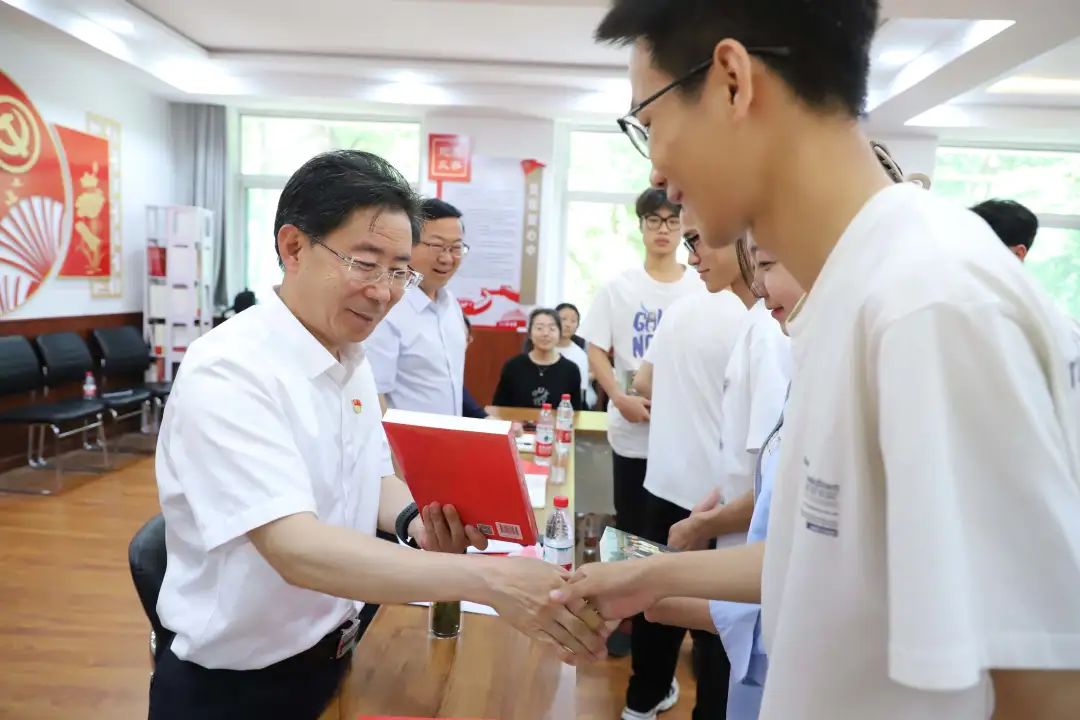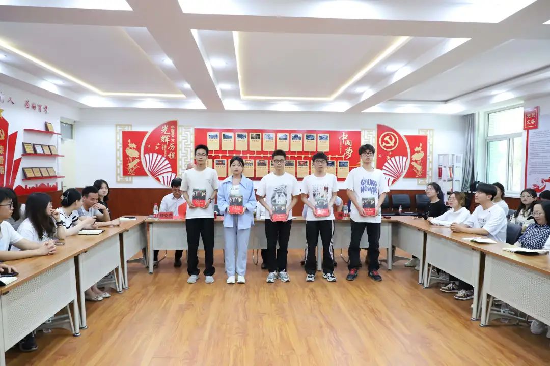 李星、黄河为班级学生代表赠送书籍《习近平与大学生朋友们》。