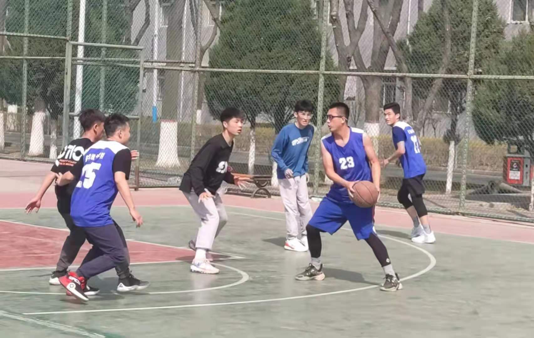 赛前,篮球场上围满了前来观看的同学,参赛的队员更是热情高涨,跃跃欲试。伴随着裁判员鸣笛,“战事”拉开了幕布。发球、运球、传球、断球、拼抢……双方运动员个个生龙活虎,激烈争夺,气氛立刻紧张起来。