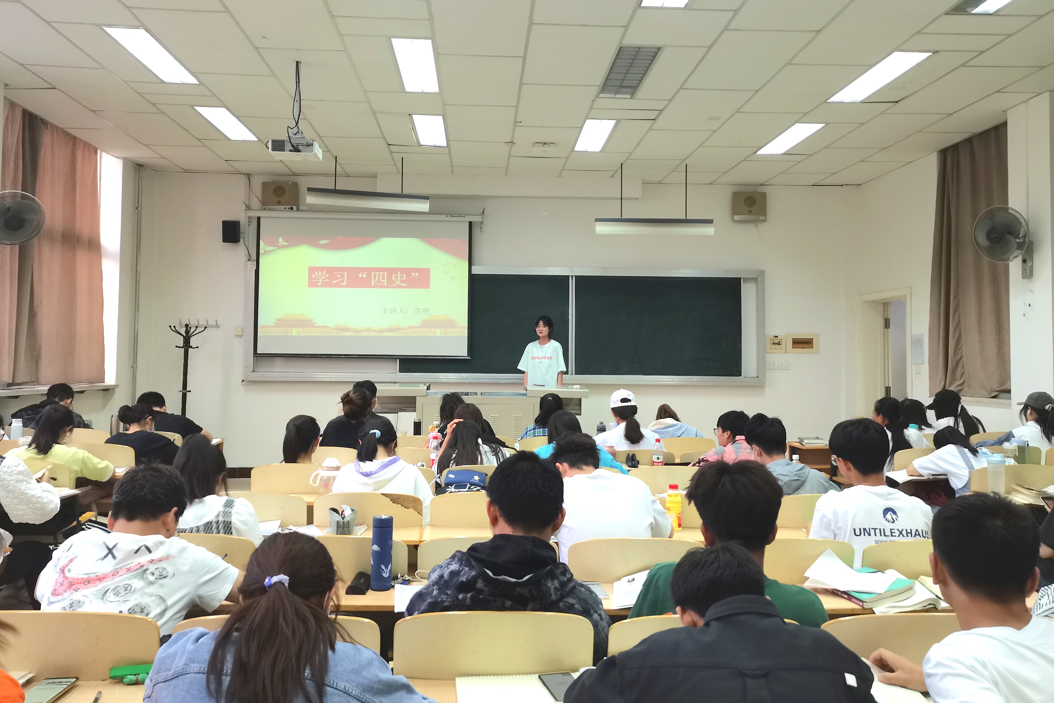 尤佳欣用许多真实的例子向同学们证明:历史是最好的教科书、清醒剂和营养剂。对于年轻一代的大学生们,学习四史可以以史鉴今,从党的历史中汲取经验和智慧,并树立正确的历史观和崇高的理想信念。