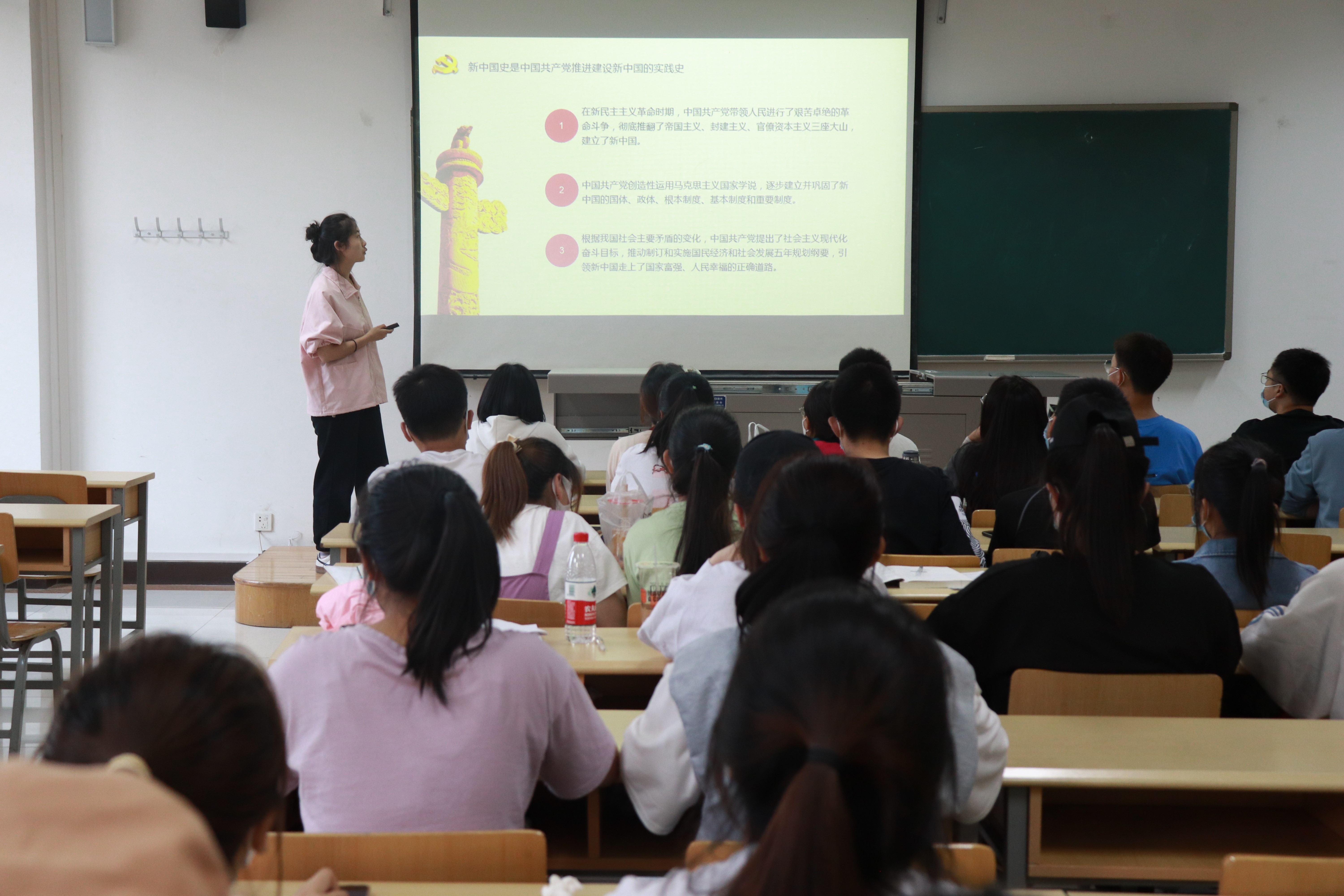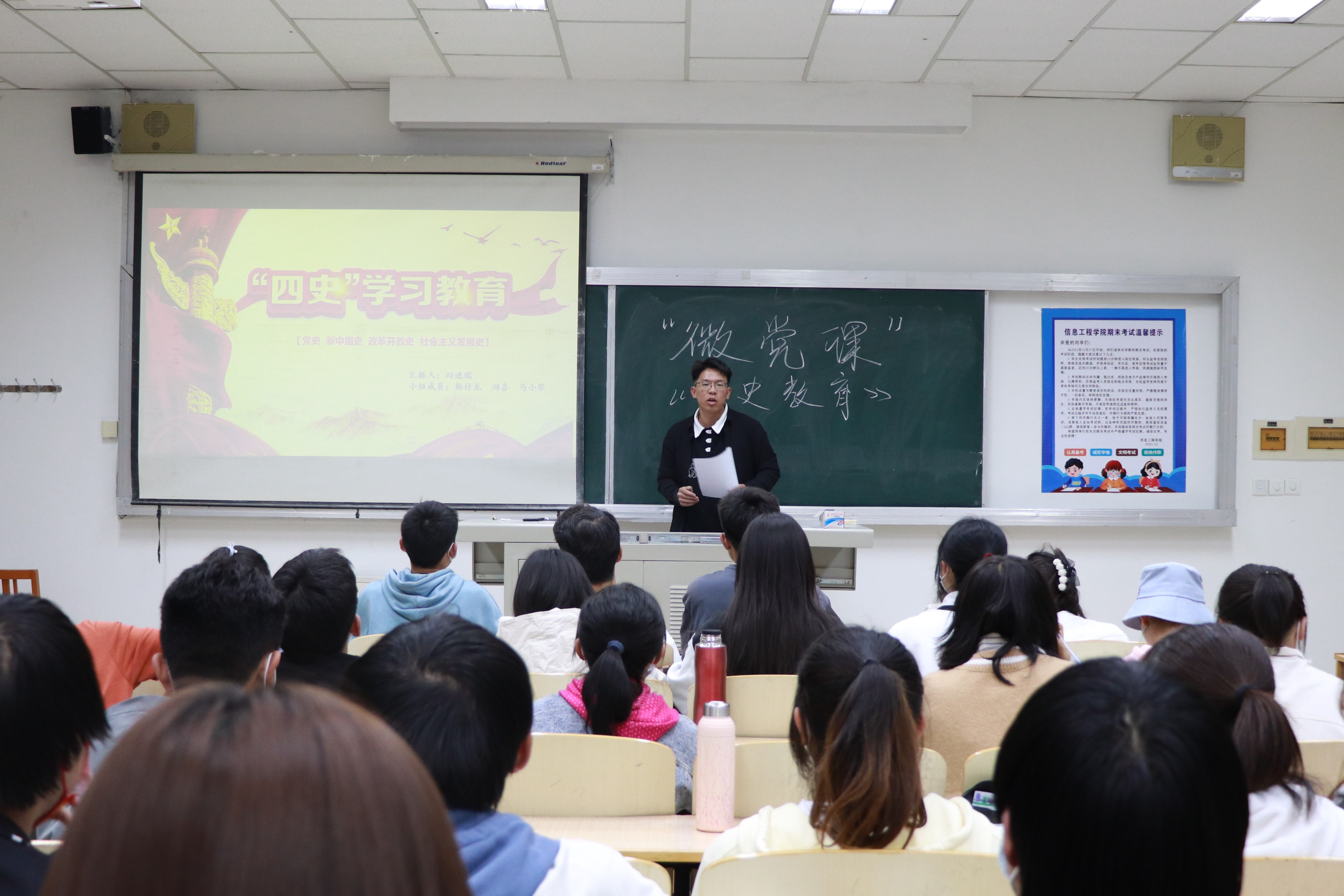 此次微党课内容主要分为四个部分,分别是新中国成立的历史背景、新中国发展的历史阶段、新中国史凝结的精神和如何学好新中国史。授课者多方举例,带领同学们畅游在历史的海洋。