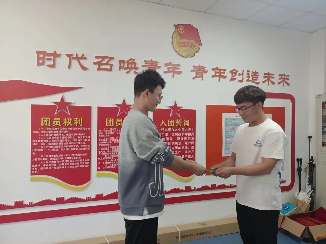 “我志愿加入中国共产主义青年团,坚决拥护中国共产党的领导,遵守团的章程......”接着,组织部负责人马兰带领新团员面向团旗,高举右手,庄严宣誓。新团员马佐平表示入团是一个崭新的起点,我们要始终奋勇前进,时刻以身作则,让团徽在我们胸前永远闪光!