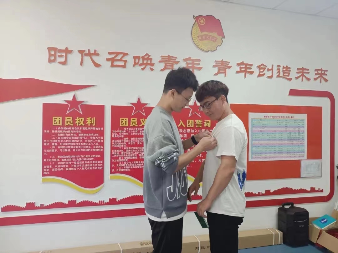 为迎接党的二十大胜利召开,庆祝建团100周年,加强学院共青团队伍建设,进一步增强团员的光荣感和使命感,共青团数学统计学委员会于5月11日下午3时在宁远楼205室举行新团员入团宣誓仪式。