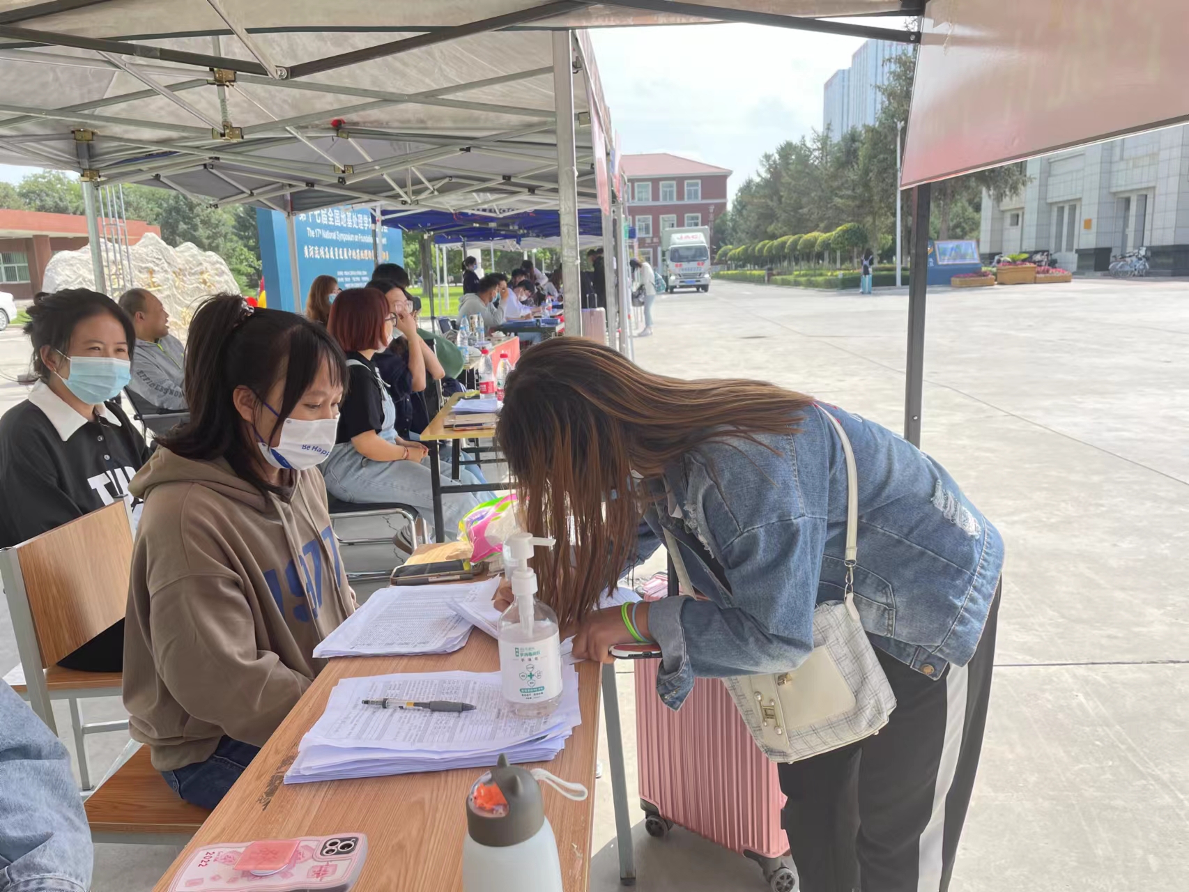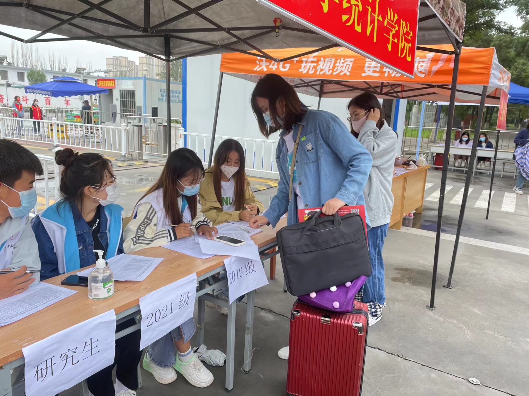 抵达学校之后,同学们在志愿者的引导下,拿出提前准备好的证件:区内返校学生收取学生返校情况登记卡,区外返校学生收取核酸检测报告单、抗原检测阴性证明及学生返校情况登记卡。