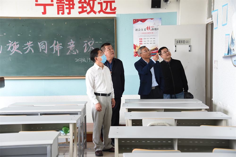 座谈会前,李星一行在民族预科教育学院党政领导班子成员的陪同下,前往田家炳教学楼的大学语文和数学课堂教学现场、综合阅览室了解课程思政建设、图书配备等情况,并在行政楼大厅观看了民族预科学生党史知识竞赛和民族舞蹈表演。