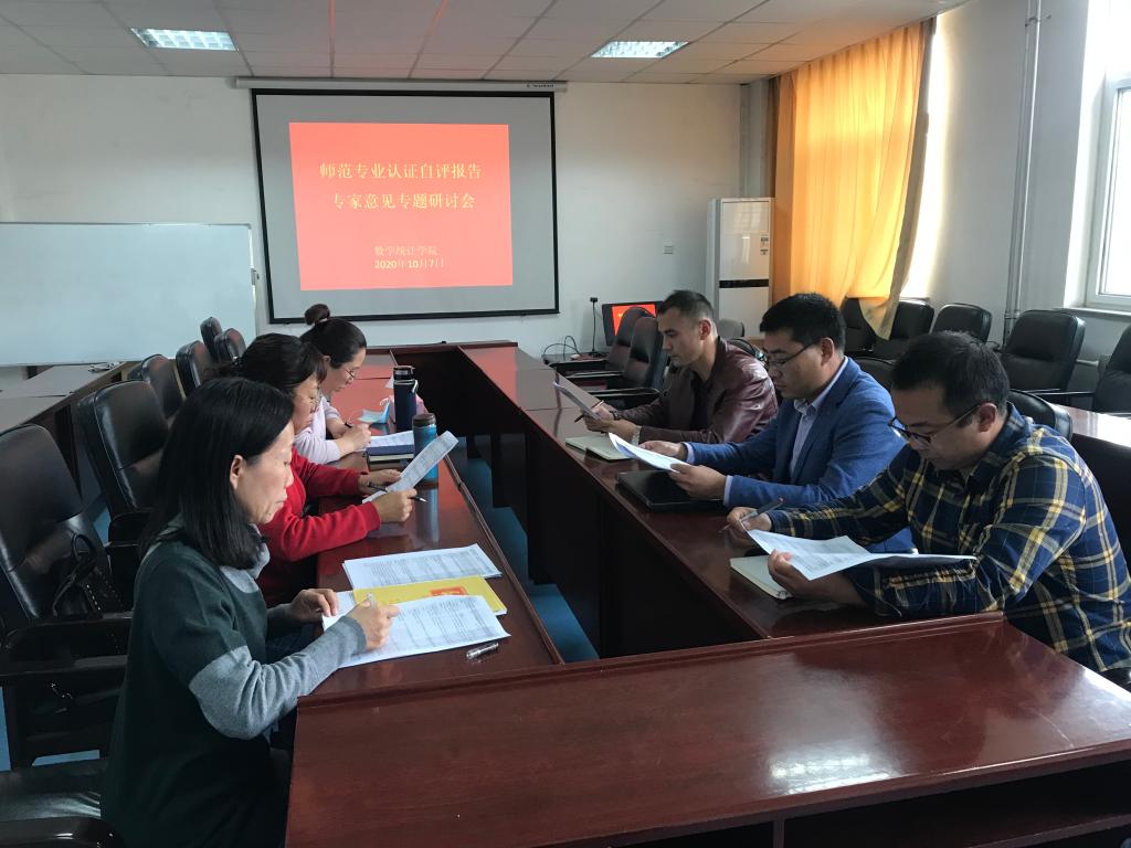 10月7日下午2点,数学师范专业认证自评报告专家意见专题研讨会在学院314举行。会议由副院长刘国军主持,副院长李风军和负责撰写自评报告的胡有婧、张天杰、刘智永、陶佳玲老师、教科办颜惠琴老师参加了会议。